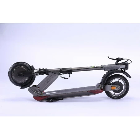 Les points forts de la E-TWOW GT SELa plus confortable des E-TWOWLe deck de la GT SE a été rallongé de 5 cm, ce qui permettra aux plus grands gabarits d’être à l’aise et de bien positionner ses pieds sur la machine. Cela permettra sur des distances plus longues de pouvoir changer de position. Un nouveau système de pliageSur les modèles précédents, le système de pliage, malgré tout efficace, pouvait être capricieux. Il fallait prendre le « coup de main ». Avec la GT SE l’apprentissage est immédiat et simplifie la vie de ses utilisateurs, 1 à 2 secondes et le tour est joué. La plus puissante des E-TWOWLa GT SE est équipée d’une batterie de 48 Volts et d’un moteur de avant de 700 Watts pouvant aller chercher un couple de 18 N.m et une vitesse max de 25 Km/h, un vrai régale en ville pour se dégager de situations périlleuses. Sa vitesse peut atteindre 40 km/h sur circuit privé. Une autonomie respectableLa GT SE dispose d’une batterie de de 10,5 AH (48V) ce qui lui permet de parcourir une distance de 35-40 KM, largement suffisant pour vos trajets quotidiens. Une petite prise de poidsToutes ces petites améliorations ont contribué à une prise de poids de la machine. Elle pèse désormais 13,4 KG soit 1 de plus que sur les versions précédentes. Un freinage enfin au rendez-vousEnfin un frein tambour d’origine à l’arrière sur e-twow, c’est une des premières choses qui venait à l’esprit lorsqu’on se demande ce qu’il manque aces modèles. Le frein magnétique avant n’était pas le freinage le plus confortable à haute vitesse, cette fois-ci il y a plus de répondant, on se sent vraiment en sécurité. |