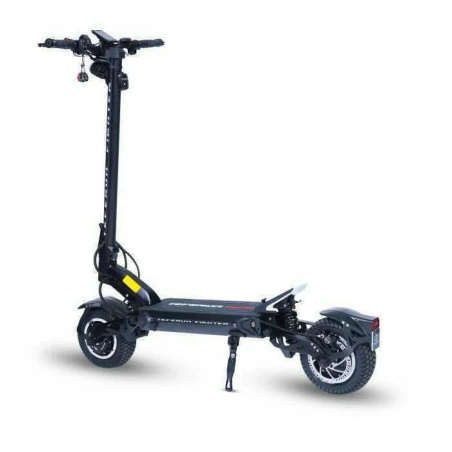 Avec son châssis en aluminium forgé de qualité aéronautique et ses renforts en acier, la solidité est au rendez-vous. L’assemblage est précis, toutes les pièces de la structure s’emboitent avec précision pour éviter les vibrations et grincements indésirables. La TEVERUN FIGHTER TEN offre un confort haut de gamme permettant d’affronter le bitume et les pavés. Les routes de campagne seront également praticables grâce à ses suspensions ressorts / hydrauliques réglables. Ses pneus 10″ contribueront au confort et à la tenue de route sportive de cette trottinette électrique puissante. La béquille renforcée inspire confiance et assure un stationnement stable. Équipée d’un repose-pied d’origine, ce dernier peut également servir de poignée de portage.